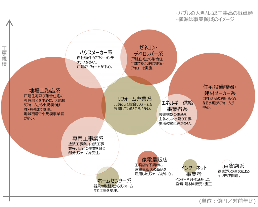 出典:リフォーム事業高は、株式会社富士経済「2011年版住宅リフォーム以上の現状と将来の展望」を一部改変